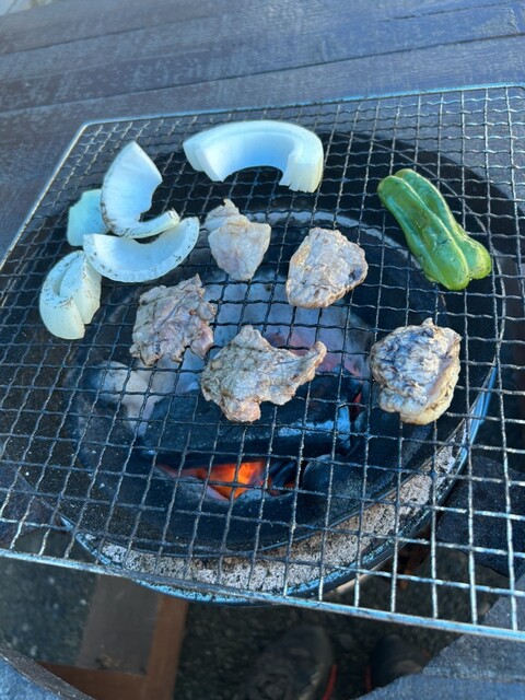 炭に火をつけて七輪で焼くサフォークラム肉!とっても肉の味がしっかりして、生涯で食べたラム肉の中でも最高ランクの味でした♪よっぽど肉に自信があるのだと思いますが、タレは無く、塩コショウのみを渡されます!