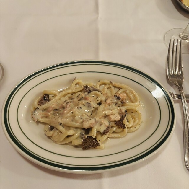 続いてきたのがピチです。トリュフの香りの濃厚さがとにかく素晴らしくて、クリームの濃厚さにまったく負けることなく、ああ、これはクリームパスタではなくてトリュフパスタなんだな、と実感しました。鶏は細かく割かれたあっさりしたもので、あくまでパスタが主役になるように量や存在感が調整されています。細い身の中に鶏だしがギュッと詰まったような旨みがありました。