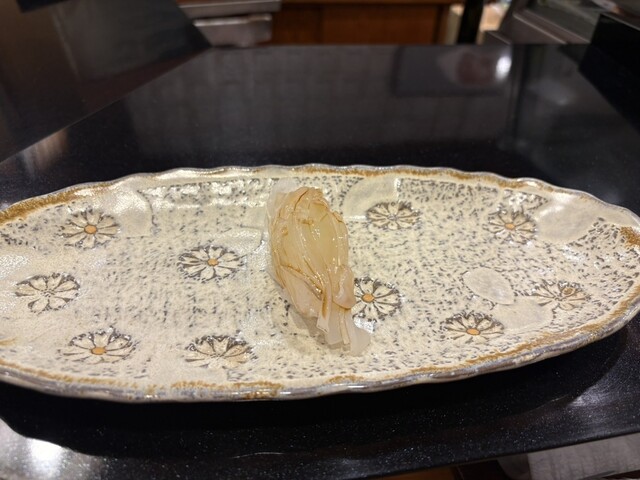 ここから握りに突入、アオリイカ、ヒラメ、ヅケ、甘エビ、ブリと続き、香箱がにへ。昨日から入荷が始まったとか、素晴らしい香りとお味。日本人に生まれてよかった!