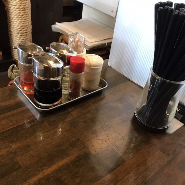 醤油・お酢・ラー油・七味・胡椒