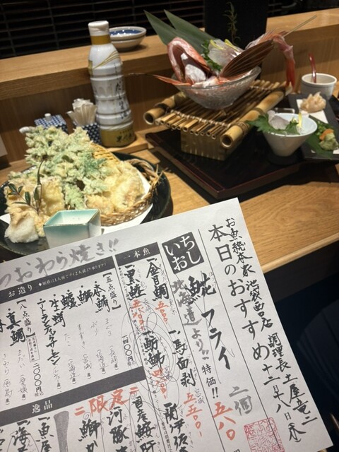 最初のお造りとにぎり、てんぷら、〆のあら汁と全て美味しくて頼んで大正解でした!