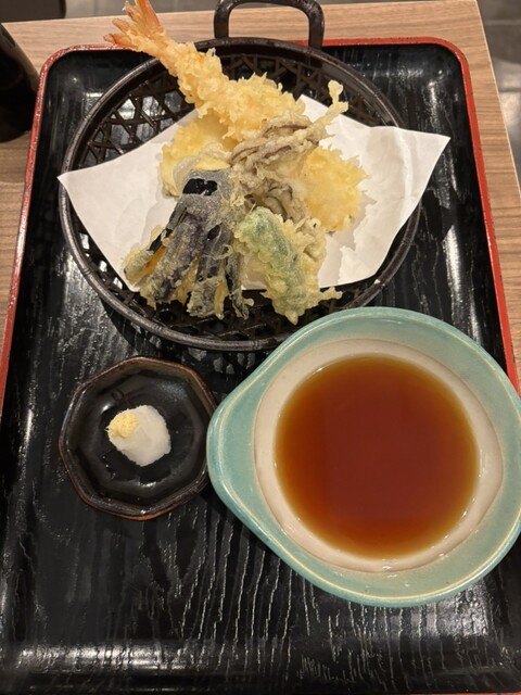 ししとう、まいたけ、なす、いか、えびでした。甘めの天つゆが、よく合いました。