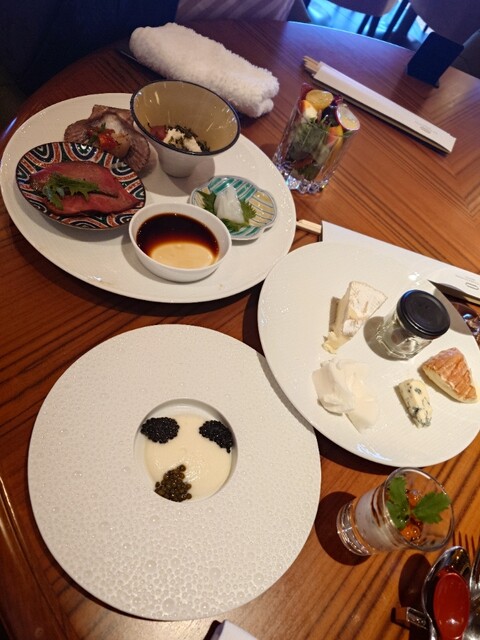 今回はメイン一品チョイスのブッフェコースで、キャビアステーションでキャビアの食べ比べができました。