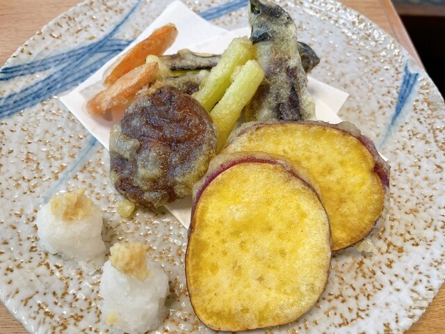 平日だったからか、空いていました。しらすが入荷されていたので、生しらすに変更してもらいました。野菜の天ぷら(2人前)とイカの塩辛、ビールも追加。