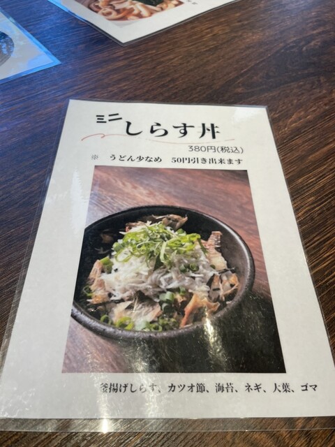 平日のお昼に訪問。14時近かったので、店内は空いていました。注文は、旨塩豆乳白胡麻坦々うどんとミニ生しらすと山形だし丼。うどんのスープが美味し過ぎて、全て飲み干しました。しらす丼も美味しかったです。うどん屋さんでまた行きたいと思うことがあまりなかった気がしますが、ここはまた訪問します。ご馳走様でした。