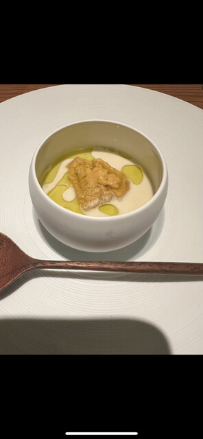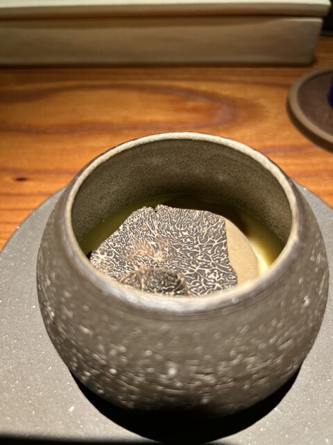 ◎トラフグのフラン、アンチョビムース、黒トリュフ、トラフグのお出汁がしっかり感じられるフランはアンチョビ、黒トリュフの相性がとても素晴らしく、濃厚で美味しかった♡