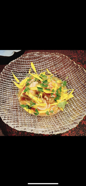 ◎松葉蟹とはっさく冷製パスタ、古代小麦の麺がツルツルモチモチ♡松葉蟹も最高でした♪