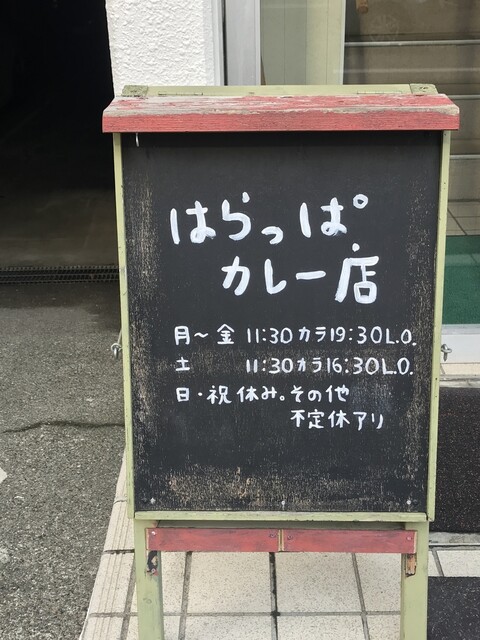 連休明けにランチ再開したから何処かで食べようと歩いてて、この辺りにカレー屋さんが有るんだよと話し、電柱に指印とカレーライスの文字を見付けてそちらへ。