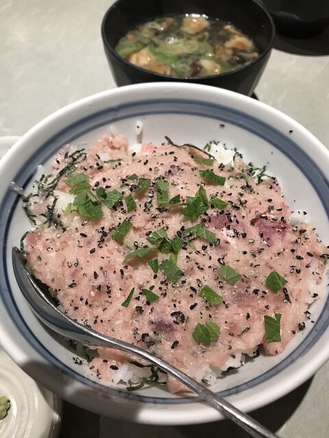 メニューの1番上に有り人気も1番のまぐろ丼と、数量限定になっていましたが未だ有ったのでネギトロ丼を注文。