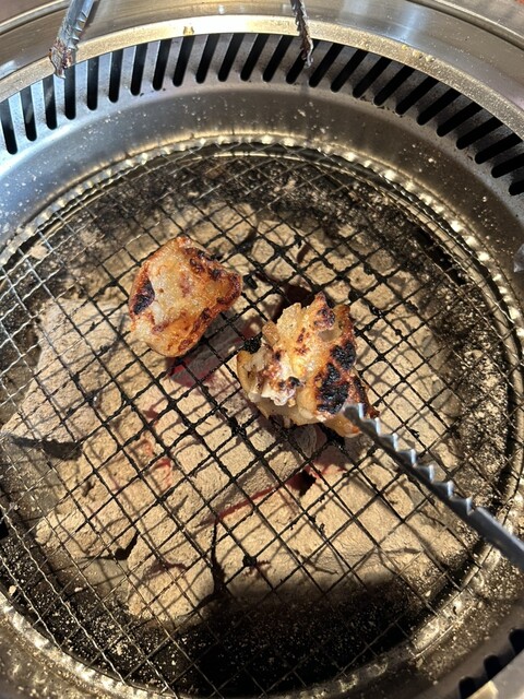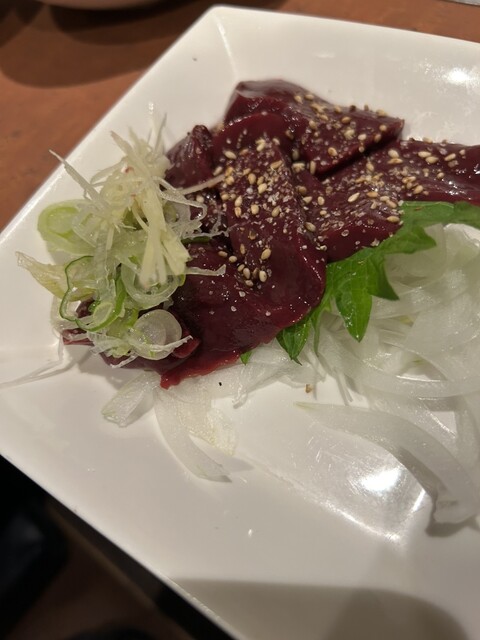 超新鮮レバーは炙ってねのプレートが付いて来ます〜多分生でも食べれると思いますが〜(昔は食べてた)片面を炙れば又違った味わいに、孫は生が好きでホントにサッと網の上を謎ってお口の中に〜