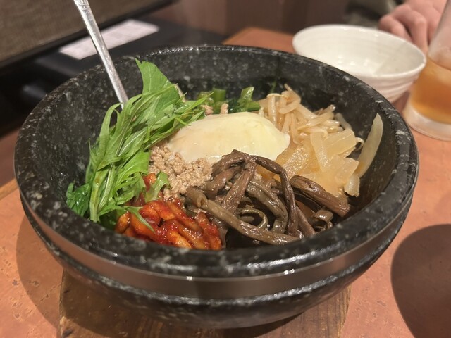又またビールが進む〜石焼きビビンバを〆に、未だビール飲めそうだからウィンナー頼んで〜(°▽°)