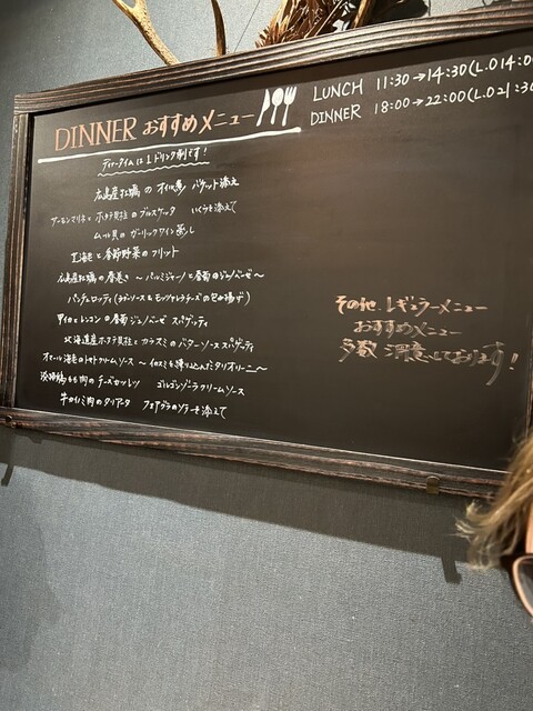 黒板にお勧めが、オマールエビのスパゲティ!