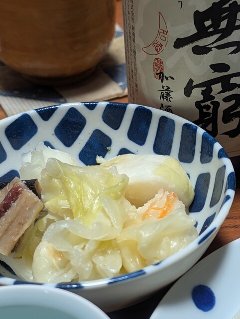 吾輩はその汁を、焼酎のお湯割りで割って飲んでいた。