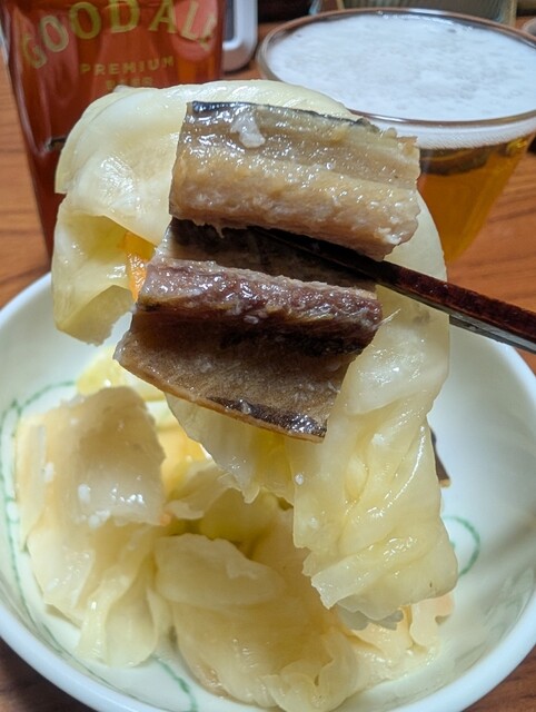氷にまみれた鰊漬は、身だけでなく氷までもが旨い。シャリッとした食感と、発酵の酸味、鰊の旨味が混ざり合い、そこらのシャーベットなど足元にも及ばない美味しさだった。