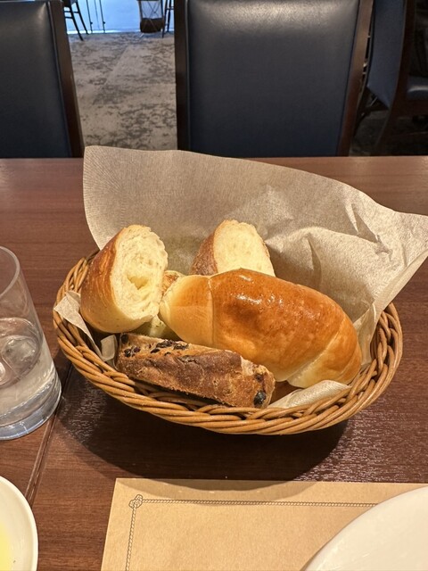 肉・魚・シチュー(➕550円)から選べて、パン食べ放題、ド...