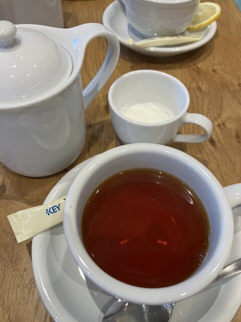 食事と同時にドリンクのミルクティーを。別添のミルクも温めてあるのが嬉しい。