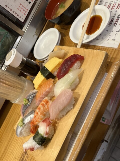 平日の15:00すぎにいきました。2回目ですが小さい店舗なので混んでいたら無理だな思いつつ、今回も2組のお客様がいるだけですんなり入れました。お任せにぎり9かん、950円!イワシも美味しいけどイカめちゃ美味しかった!