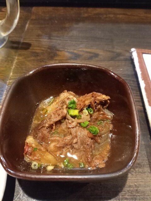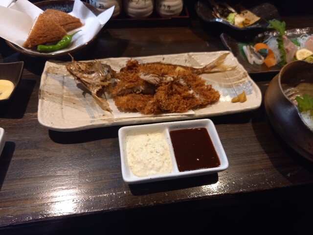 ちょっと遅めの20:30頃入店、カウンターに着席。まずはビールで乾杯。食べ物は長崎名物しばり?ということで、まずは海鮮、刺身盛り合せ/鯨盛合せ、どれも新鮮プリプリ。続いて揚げ物、かんぼこ/ハトシ、いづれも揚げたて熱々。実は一番楽しみにしてたのはアジフライ!普段見るソレとは大きく異なりドでかい一匹が丸ごと頭からしっぽまでカラッと揚げて出てきます。一口サイズに切り分けられているのも特徴ですね。表面カラッと身はふわふわでサイコーです。頭、背骨、しっぽまでボリボリ頂けました。最後に出てきたのはメニューに掲載がないサービスデザート。すごく小振りな抹茶ムースでめっちゃ美味しかったです。お店は混んでたけど店員さんはよく気がついて待たせられることもなく快適でした。たくさん飲み食いした割にお勘定もリーズナブル、居酒屋百名店は伊達じゃないと痛感しました。