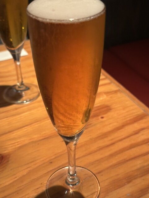 久しぶりにオジサン3人でお邪魔しました。最近は予約が取りづらいお店になってしまい、前もって予約を入れておきました。18:00頃入店すると既に6割程度の席が埋まっていました。流石人気店‼️しかも客層は20代の若い女性が多く、我々オジサンが来て良い空間か?と思わせる程若い女性客で賑わっていました。まずはビールで乾杯し、その後はアラカルトで楽しもうとスタッフさんを呼ぼうとした所、知り合いがシェフを呼び「申し訳ないんだけど、お任せで作ってもらえる?」とお願いし快諾。何て有難いシェフ。人柄良し味良しで言う事無し。ビールの後はこぼれスパークリング→こぼれシードル→赤ワイン(ボトル)→ハイボール等々久しぶりに堪能させて頂きました。