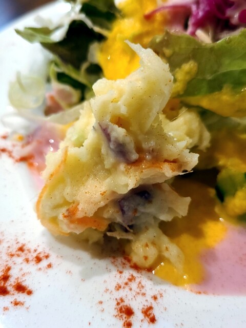 皿の縁にふりかけられてるのはパプリカパウダーかな?塩梅の良いドレッシングと相まって野菜がモリモリ食べれます♪