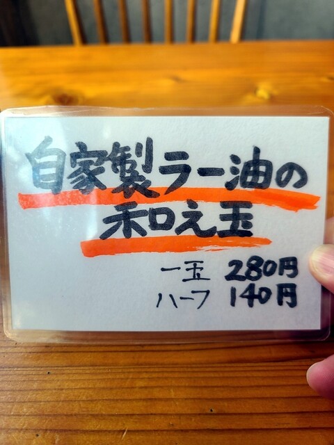 まずは「煮干し和え玉」をハーフで。