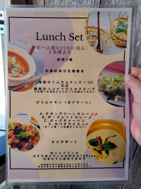 スープは「海老のトムヤムクンスープ」、ご飯ものは「チキングリーンカレー」をCHOICE。