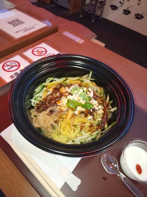 最終営業日が迫っているのでレギュラーメニューの担担麺にすべきか迷いましたが、本日が最終日だったので麻婆茄子麺に。前回より一段階辛い6辛です。