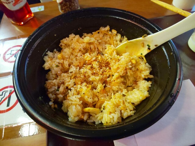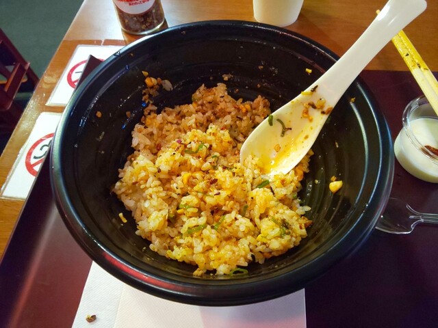 前回の老担担麺と比べてかなりスープ多めなので、つい追い飯を入れすぎてしまいました笑。