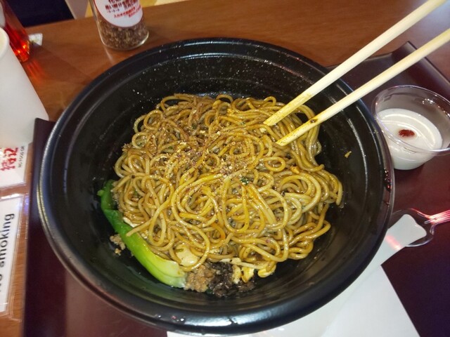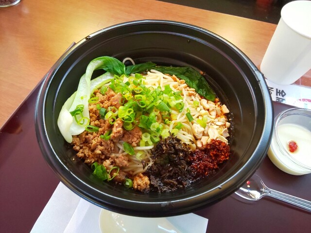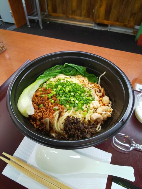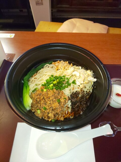 味を決めているのは少量の醤油ベースのタレとミンチとヤーツァイ、カシューナッツ、ネギ、辣油と花椒だけで、どんな味かの説明は難しいですがとにかく美味い!レギュラーメニューの担担麺とは異なる、ユルめに茹でた低加水麺も実に良く合っています。