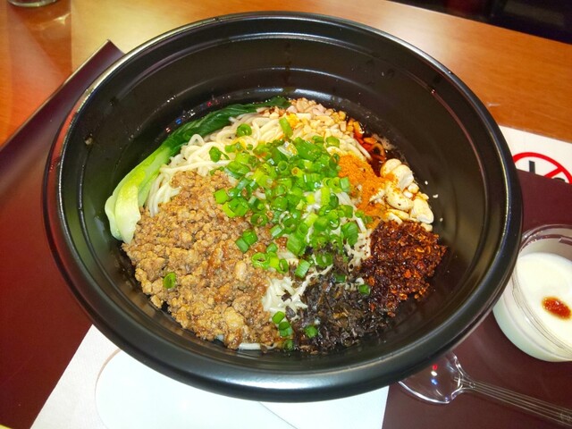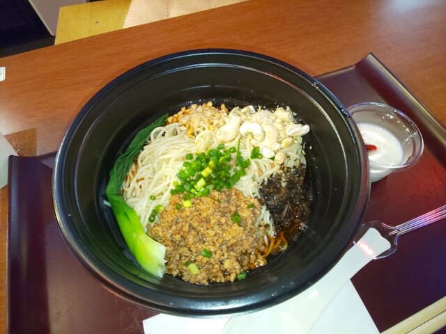レギュラーメニューの担担麺とは異なり、スープの量はさらに少なく、少量のタレが入っているだけの混ぜそばに近いものです。
