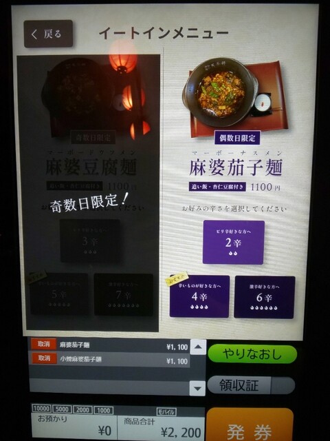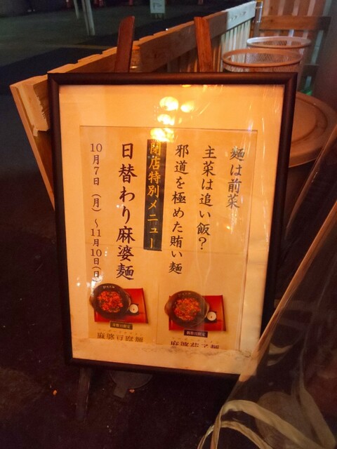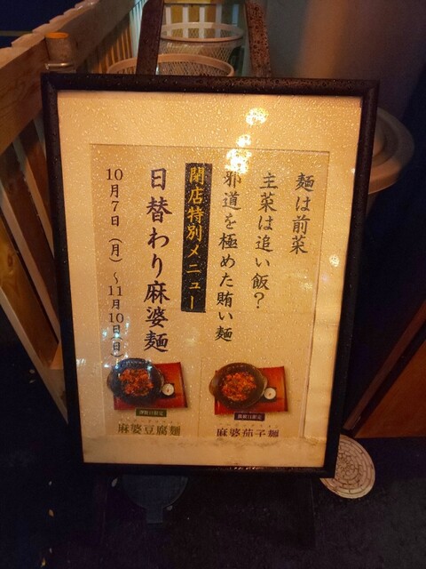 なお、奇数日は麻婆豆腐麺、偶数日は麻婆茄子麺と日替わりになっています。