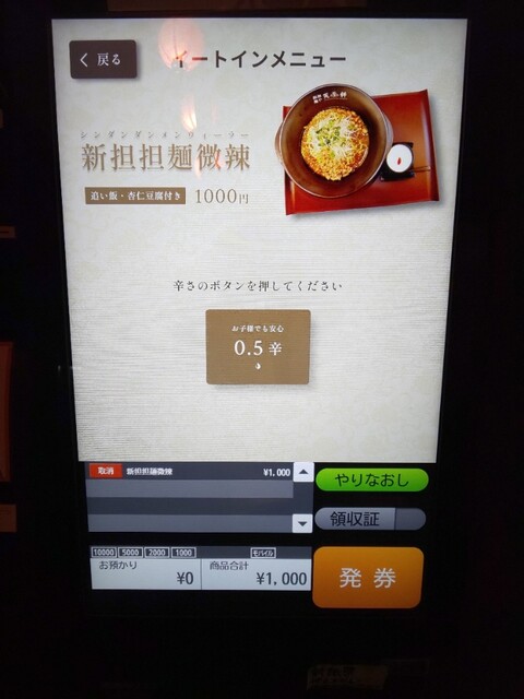 そう言えばまだ試していないレギュラーメニューがあったことに気がついて、今回は新担担麺微辣❨0.5辛❩です。