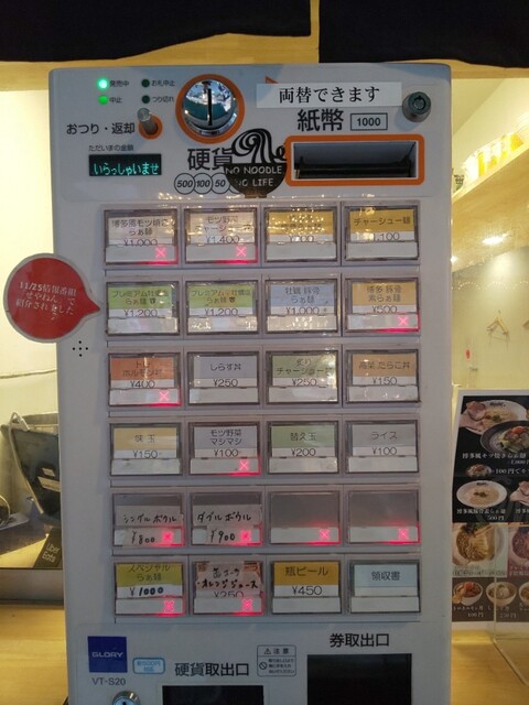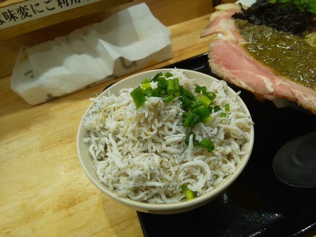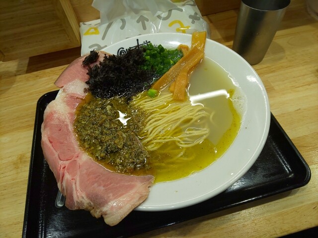 今回も大阪日本橋のオイスティーへ。至って普通の平日夜なので、特段売り切れになっているメニューもなく、食券を買って待たずに入店。今回も当然、「プレミアム牡蠣塩らぁ麺」と「しらす丼」です。