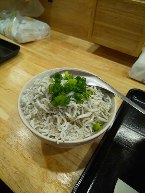 しらす丼も、ウエットな良い釜揚げしらすと胡麻油、塩、ネギだけのシンプルな味つけですが、相変わらず美味い。
