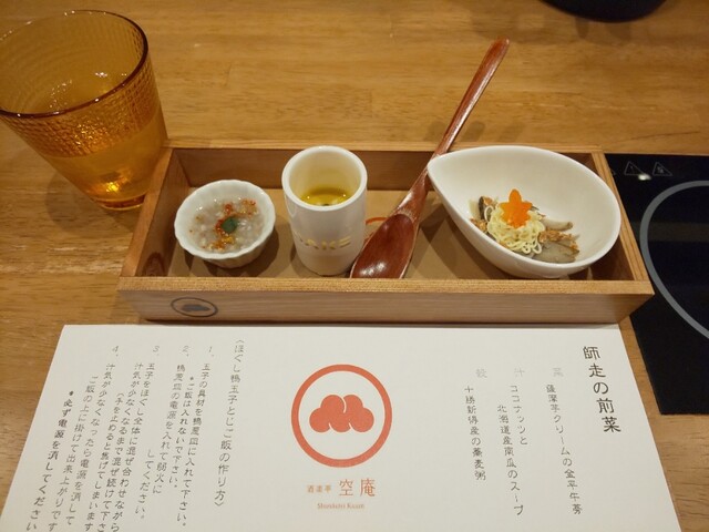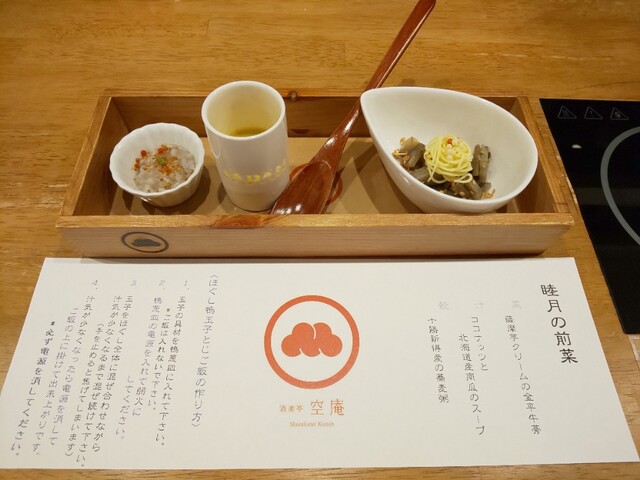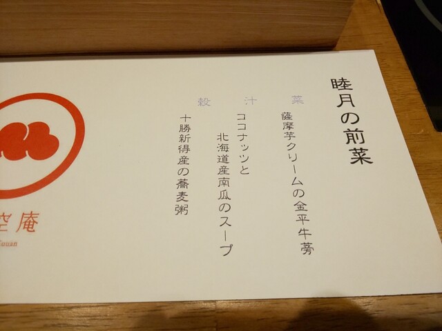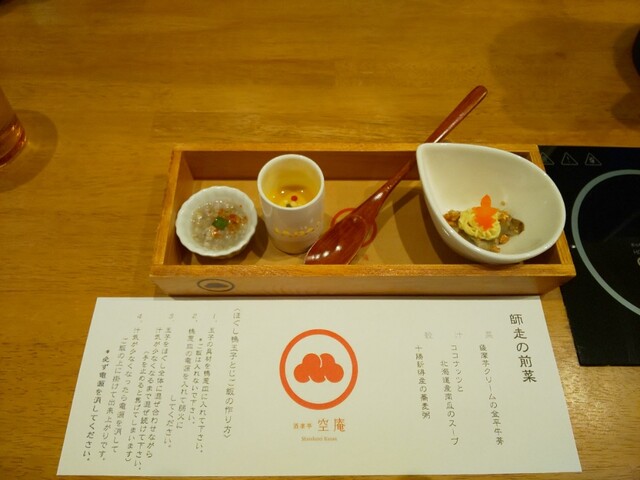 ココナッツと北海道産南瓜のスープ、十勝新得産の蕎麦粥
