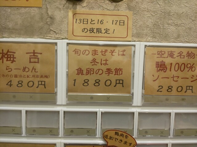 券売機で食券を買う方式ですが、相変わらず紙幣は旧千円札しか使えません。旧千円札もなかなか手に入りにくくなってきたので、両替してもらえるとは言え、そろそろどうにかならないかな。