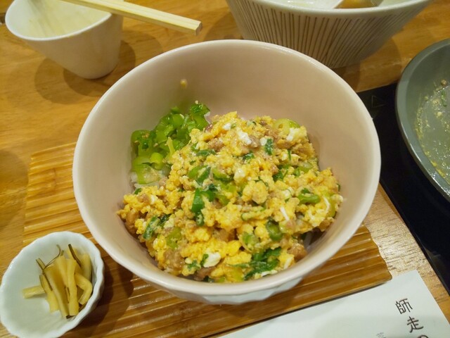 「ひしお茶漬け」ですが、ご飯の上に「鴨はちらーめん」にトッピングされている「ひしお」がトッピングされているだけのシンプルなものです。らーめんのスープをたっぷりかけていただきました。