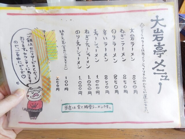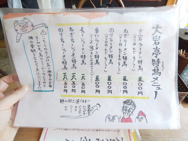 ちなみに、店名が「豚骨 大岩亭」なのになぜ看板メニューは「特鳥」なのか?ですが、これにはちゃんと理由があります。かつては豚骨のみを炊いた「特豚」が看板メニューでしたが、PED❨豚流行性下痢❩が流行って豚骨不足になった時に、豚と鶏をブレンドした特鳥を開発したという経緯があります。今でも時々特豚が復活したりしますが、両方知ってる自分としては鶏皮のコラーゲンの粘りが無い特豚の方が好きかな。