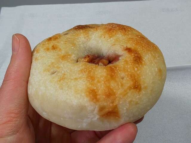 湯種あんぱんはベーグル系のモチモチの生地にあんが入っていますが、あんがそれほど好きではない自分にとっても食べやすいあんです。