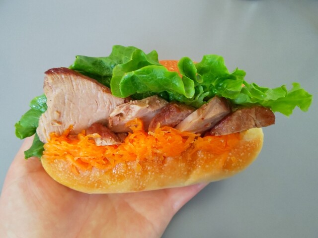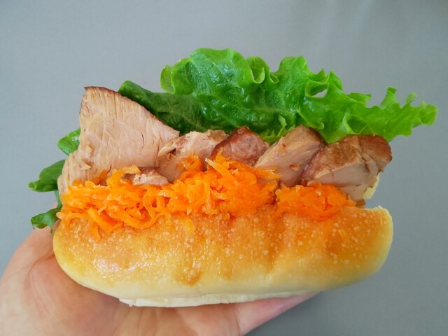 煮豚サンドは表面に煮豚とニンジン、中にクリームチーズが仕込んであります。オレンジピールのさわやかな香り。