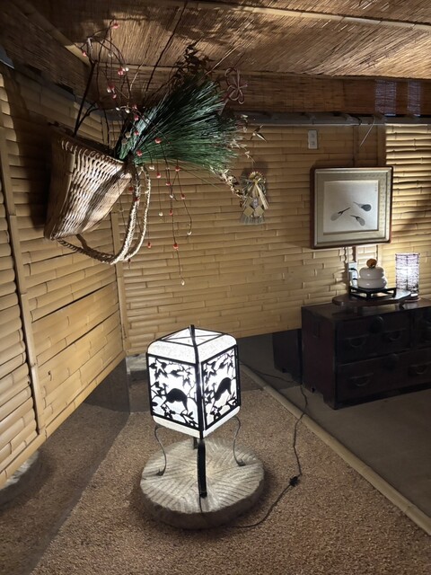 早速食事のため民家風料亭おりがみさんに向かいます。受付で部屋の名前を告げて(アルプス)掘りごたつ席に案内されました。