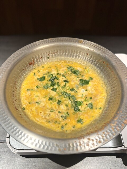 すり流しは滑らかな舌触りにミルキーな味わいでホッとする一品でした。さっと振りかけられたアスパラもアクセントとなっていました。