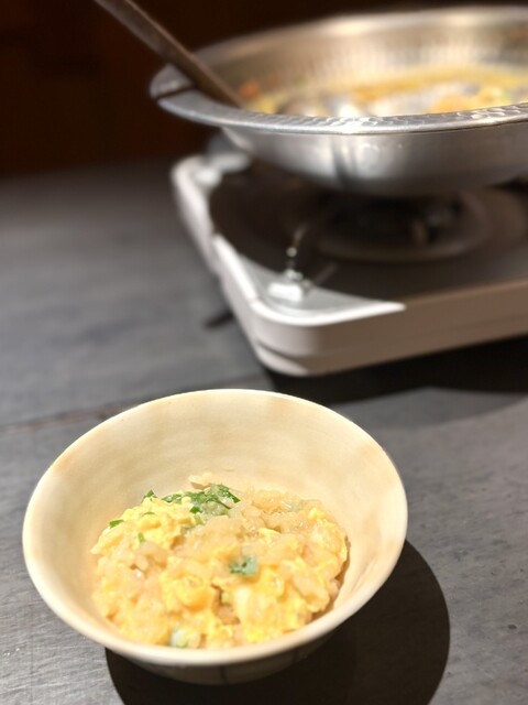鰤のしゃぶしゃぶでいただいたお出汁を雑炊にしていただきました。もう満腹のはずなのですが、スプーンが止まりません。困ったものです^_^