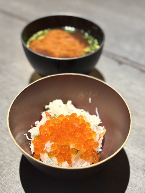 締めの料理です。赤出汁と一緒にいただきました。