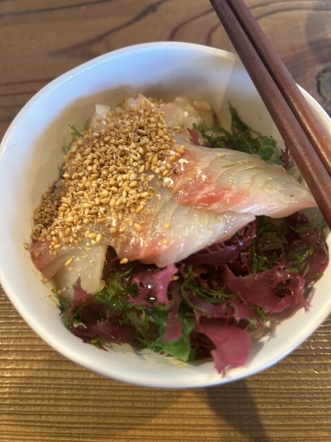 次に鯛めし。鯛も美味しいし、下の海藻とかも邪魔することなく彩りも綺麗でミニにしたことを後悔しました。