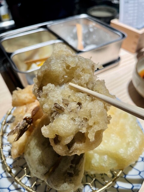 サーモンや真鯛の天ぷらは柔らかく、噛むと口の中で身が崩れていく