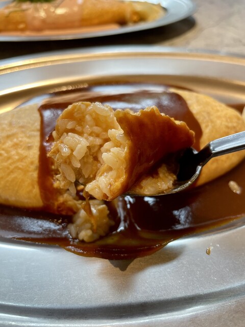 ふっくらではなく、少しペッタンコした見た目だが、卵の厚みにスプーンですくうとトロトロとろける