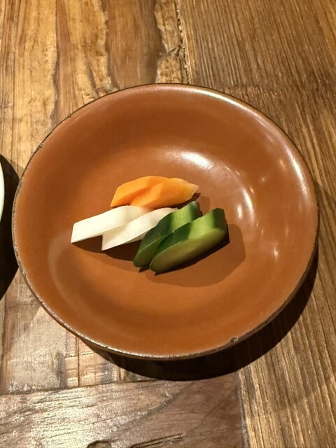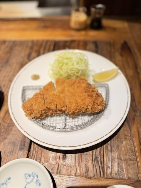 人通りの少ない路地にひっそりではありますが、趣き深い佇まい。店に入ると「いらっしゃいませ」と心地よく迎えていただけました。予約もせずに行ったので、入れるかなぁと思いましたが、この日は空席もあって、すぐに入れました。1Fのカウンター席に通されました。少し高い視野から厨房を臨める位置にあり、とんかつを丁寧に揚げているのを眺めることができるので、食欲がそそられます。既に何名か座られていました。