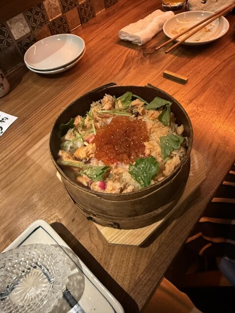 この日はおばんざいの6種盛りからスタートして、おつくりのセット、鮭といくらのわっぱご飯でフィニッシュしました。