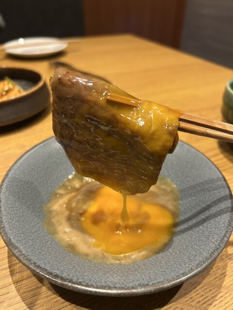 焼いたサーロインすき焼きをそのタレに入れて
